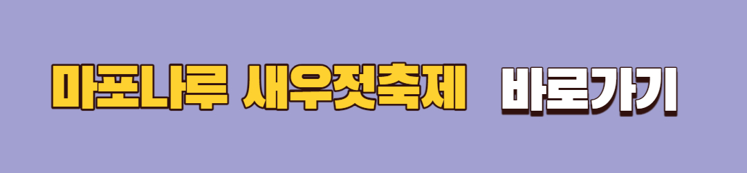마포나루 새우젓축제는 마포나루의 역사와 전통을 기리기 위해 열리는 축제입니다. 10월 20일부터 10월 22일까지 월드컵공원 평화광장에서 다양한 행사가 펼쳐집니다. 이 축제에서는 새우젓을 주제로 한 체험과 다양한 공연, 불꽃놀이 등을 즐길 수 있습니다.
