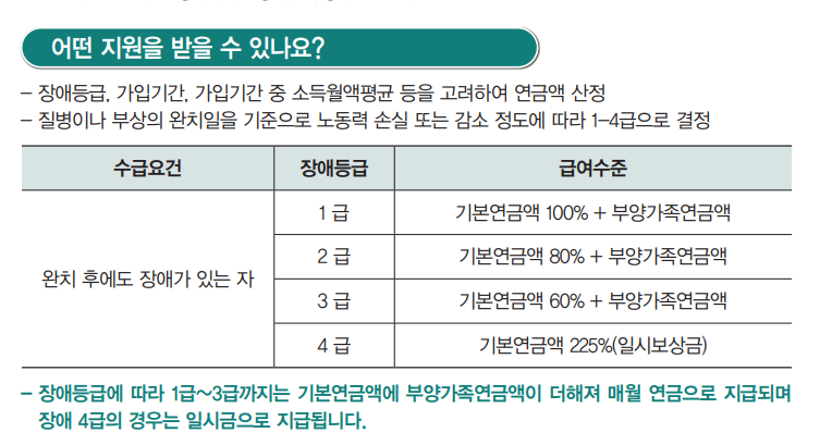 장애연금 지급액은 장애등급에 따라 차등 지급됩니다: