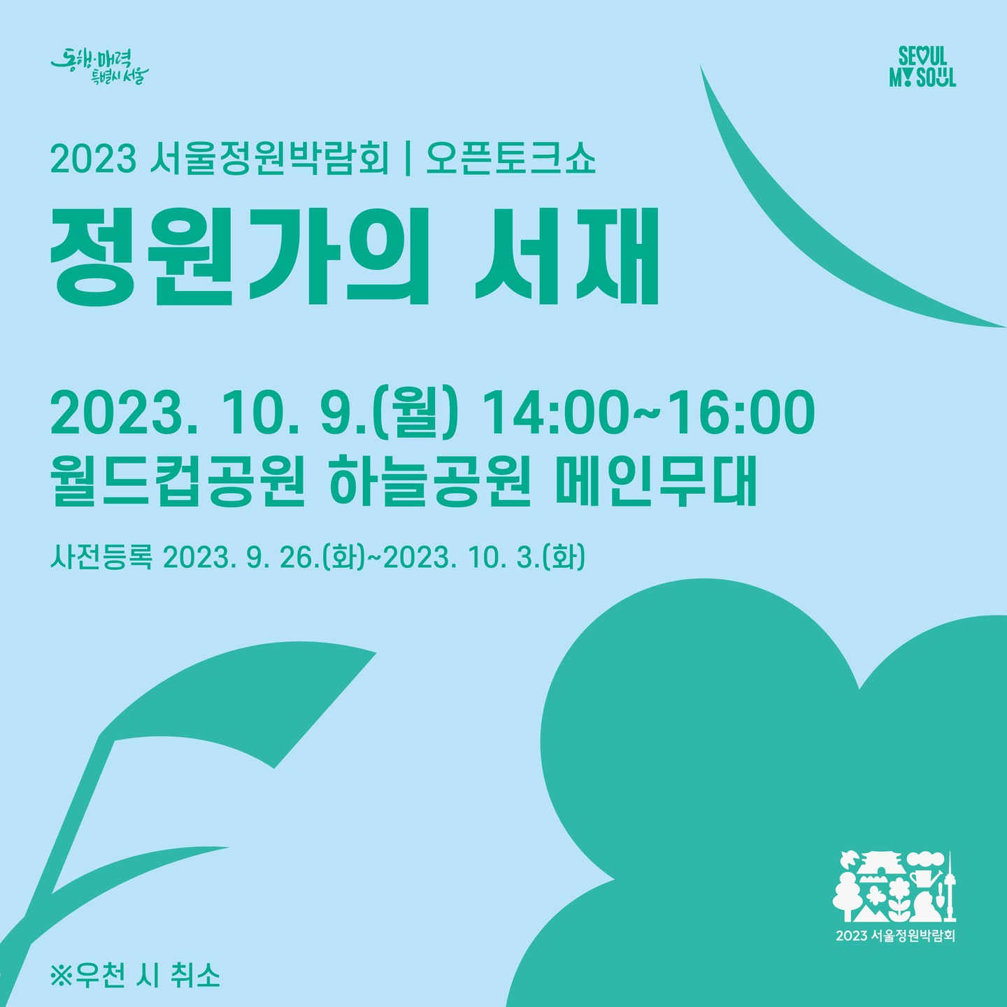 서울정원박람회는 2023년 10월 6일부터 11월 15일까지 서울특별시 마포구 하늘공원에서 개최됩니다. 이 축제는 '정원 도시, 서울'의 감성과 문화를 담아 고품격 정원을 선보이고, 정원문화의 확산을 위한 다양한 프로그램을 통해 서울을 정원의 도시로 알리는 행사입니다.