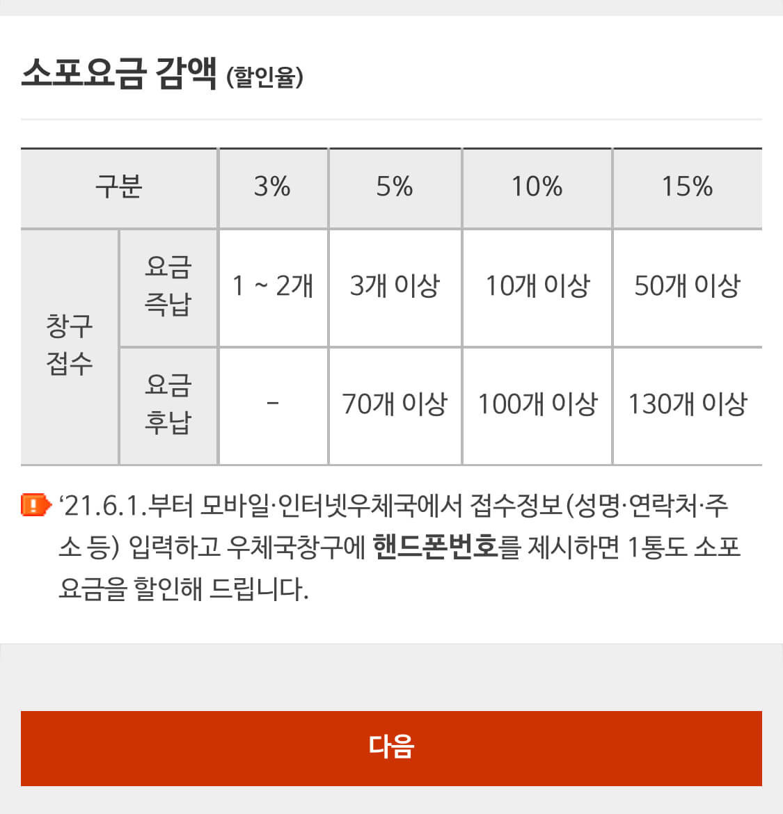- 온라인 접수 시 우체국 택배 요금 500원 할인 혜택