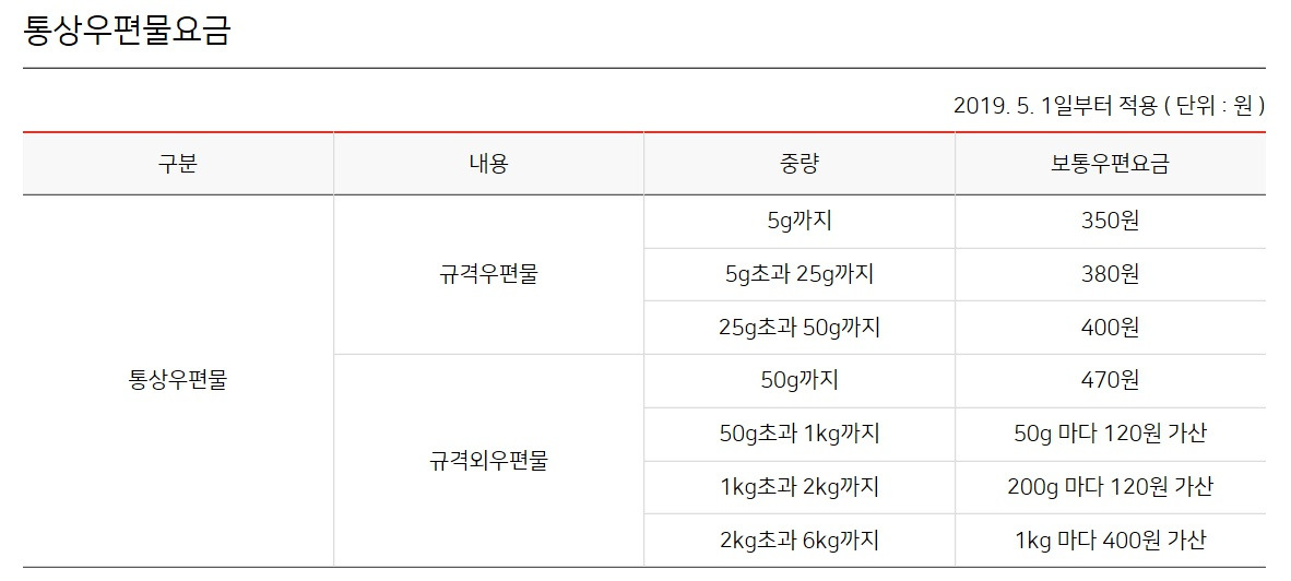 - 전국 동일한 우체국 택배 요금 체계